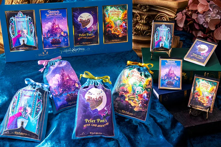 「ファンタジースプリングス」のロゴがデザインされたブック型のポストカードホルダーと、ポストカードがセットで入っています!
