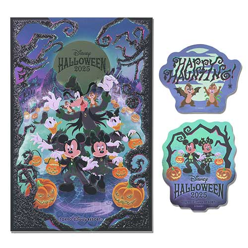 ハロウィーンの衣装に身をまとったミッキーたちの写真が10枚セットで入っています!