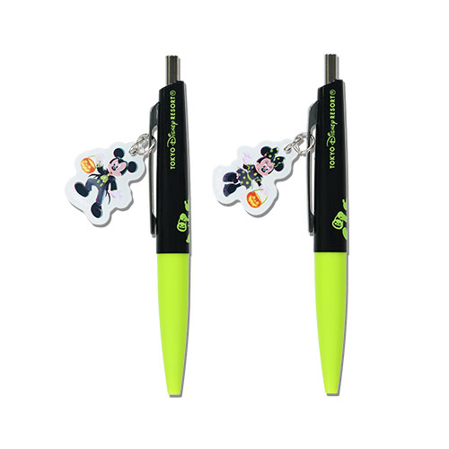 ミッキーとミニーのチャームがついた可愛いボールペンです。色はどちらとも黒色です。
